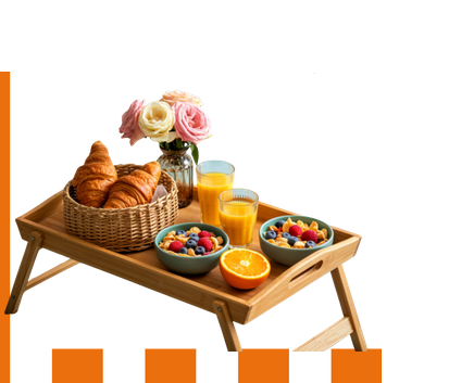Petit déjeuner léger (Café, chocolat chaud, thés, lait , biscuits secs et petits gâteaux, céréales et compotes (pour les enfants))