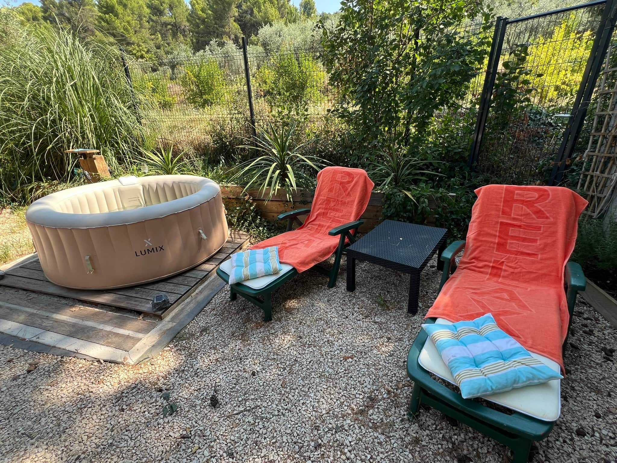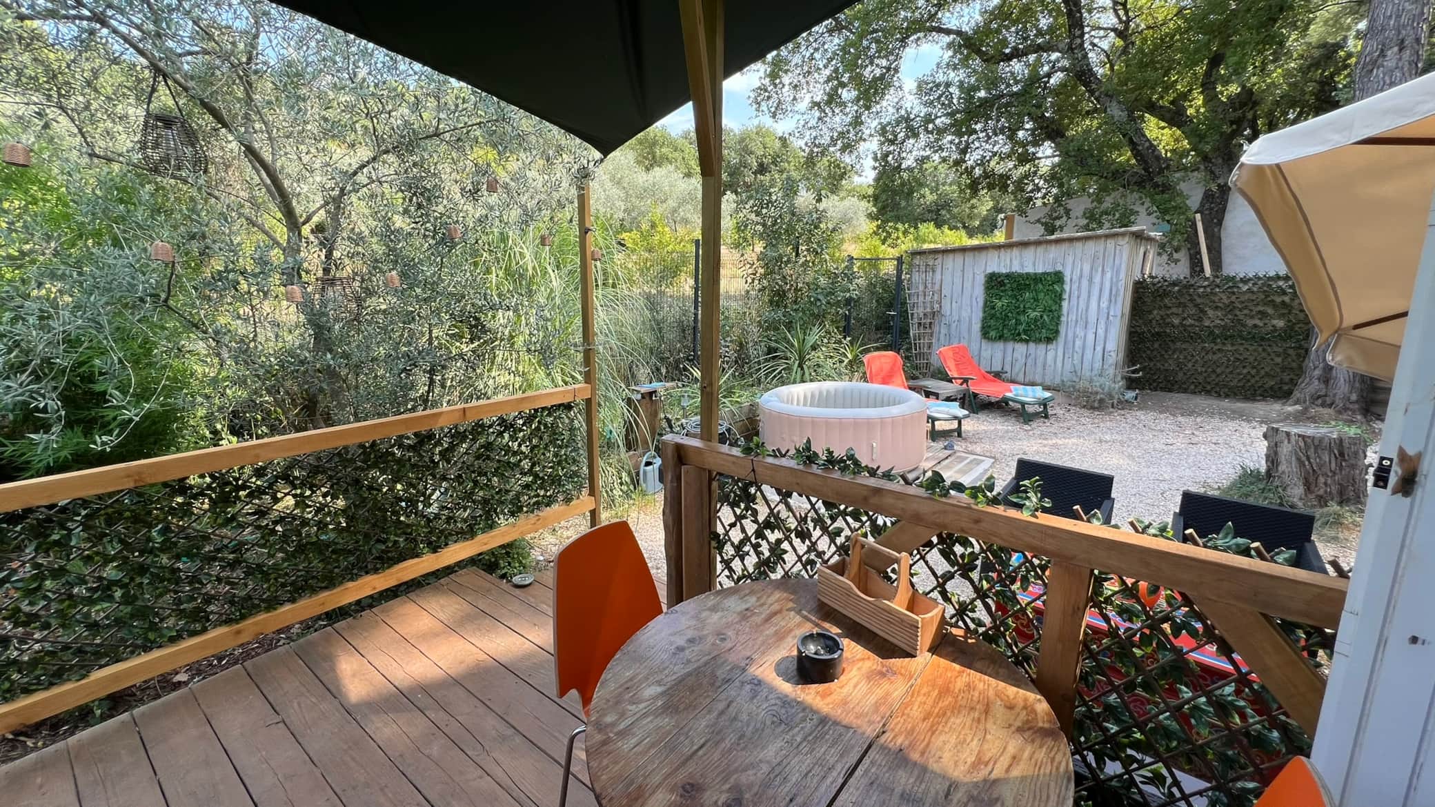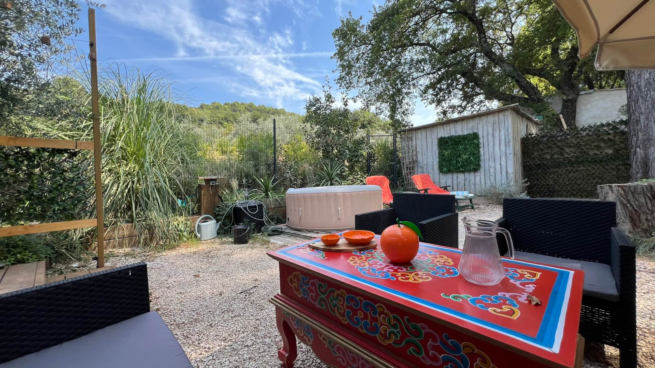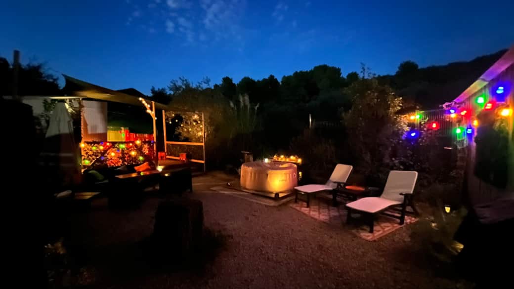 Placée dans notre forêt de 3000m2 et près de vergers de grenade et champs d’oliviers (agriculture biologique).