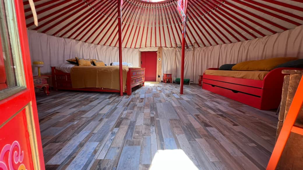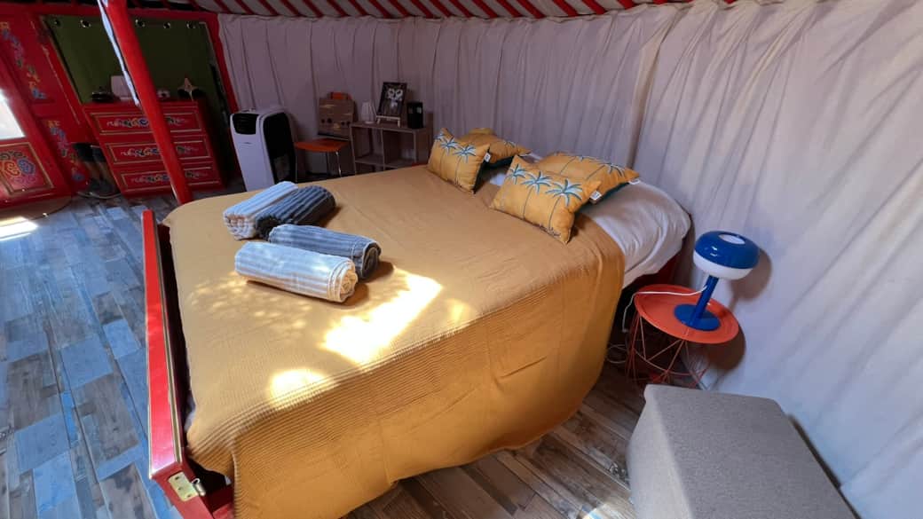 Composée d’un lit double (140cm) et d’un lit gigogne (2x90cm) et il est possible d'avoir un lit bébé pliant (avec supplément pour le séjour)